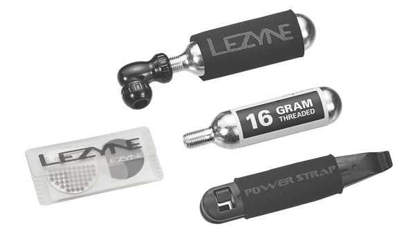 Praktisches CO2- und Reifenreparaturset. Inklusive Twin Speed Drive, zwei 16g CO2-Kartuschen mit Gewinde, Power Levers Reifenhebern und Smart Kit. Nur das Nötigste für die schnelle Reparatur von Reifen.