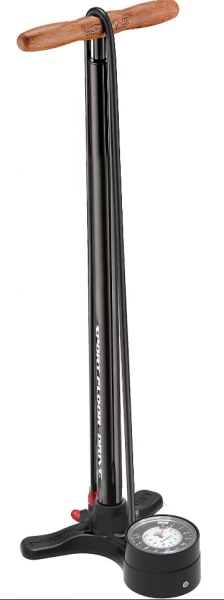 Stahlzylinder und Kolben mit robustem Fuß aus Verbundkunststoff. Übergroßes 3,5-Zoll-Messgerät. 220 psi max. Extralanger, hochfester Schlauch mit Composite-Matrix-Kupplungen. Haltbare, lackierte Oberfläche mit Griff aus lackiertem Holz. ABS1 Pro oder Doppelventil ausgestattet.