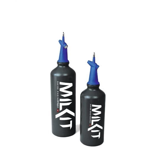 Um einen Tubeless Reifen zu montieren, ist ein gewaltiger Luftstoß nötig, damit sich die Reifenwulst schnell in das Felgenhorn drückt und der Reifen abdichtet. Mit einer herkömmlichen Luftpumpe funktioniert das, je nach Reifen und Felgenkombination, eher selten. Oft werden hierfür Kompressoren verwendet, die man an Tankstellen oder in Werkstätten findet. Damit dies auch unterwegs und ohne Kompressor gelingt, gibt es jetzt den Tubeless Booster von milKit. Ein besonderer Vorteil: Die Flasche kann als schöner Nebeneffekt auch als Trinkflasche verwendet werden.
