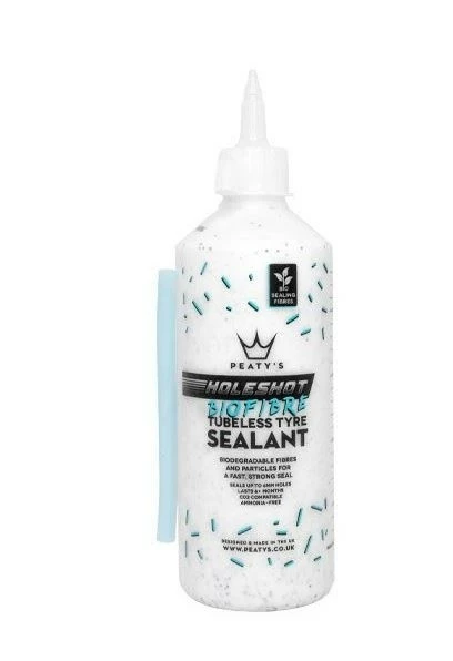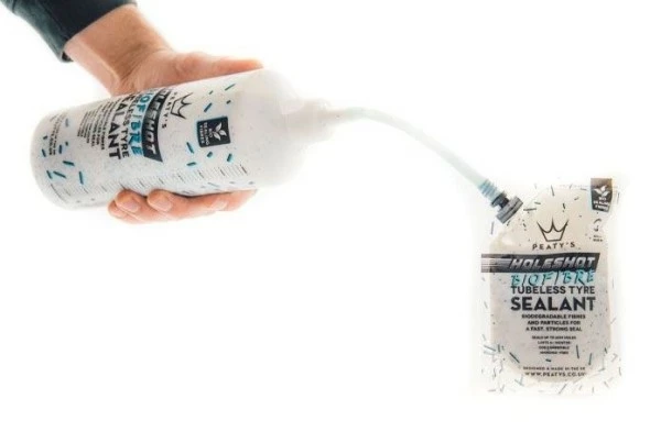 Das Holeshot Tubeless-Dichtmittel von Peaty’s ist mit biologisch abbaubaren Fasern und Dichtungspartikeln angereichert, um eine schnelle und zuverlässige Abdichtung zu gewährleisten. Das Dichtmittel auf Wasserbasis ist ammoniakfrei, ungefährlich und hält in gemäßigten Klimazonen* bis zu 6 Monate im Reifen.
