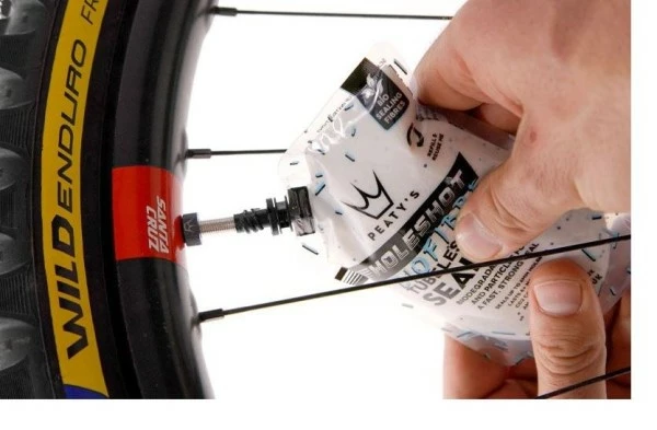 Das Holeshot Tubeless-Dichtmittel von Peaty’s ist mit biologisch abbaubaren Fasern und Dichtungspartikeln angereichert, um eine schnelle und zuverlässige Abdichtung zu gewährleisten. Das Dichtmittel auf Wasserbasis ist ammoniakfrei, ungefährlich und hält in gemäßigten Klimazonen* bis zu 6 Monate im Reifen.