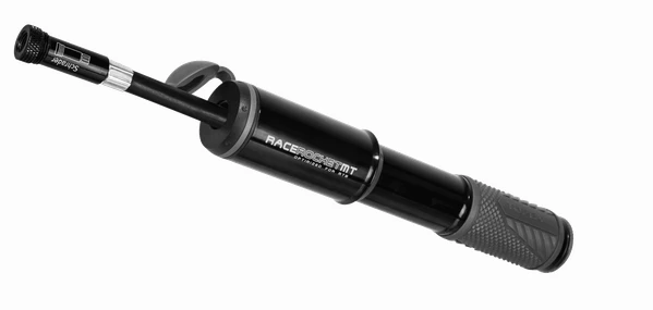Besonders für großvolumige Mountainbikereifen geeignet – bietet die elegante Minipumpe einen hochwertigen Aluminiumkörper, -kopf und -griff und besitzt für maximales Volumen pro Hub einen besonders großen Zylinder. Ein ausziehbarer Schlauch mit SmartHead™ ThreadLock Pumpenkopf passt auf Presta- sowie Schrader-Ventile und schont diese effektiv während des Pumpens. Dank der besonders effizienten und leichtgängigen Funktionsweise erreicht die Minipumpe bis zu 90 psi / 6 bar. Aufgrund der kompakten Größe passt die RaceRocket MT in fast jede Trikot- oder Satteltasche und ist dank gerade einmal 114 g Gewicht auch kaum spürbar.Hinweis: Der ThreadLock Pumpenkopf sollte immer mit Vorsicht auf Presta-Ventile mit ausschraubbarem Ventilkern genutzt werden, da sich dieser ggf. beim Abschrauben des Pumpenkopfes verkanten und ausgeschraubt werden kann. Stellen Sie sicher, dass der Pumpenkopf stets korrekt auf- und abgeschraubt wird und gerade auf dem Ventil aufsitzt.
