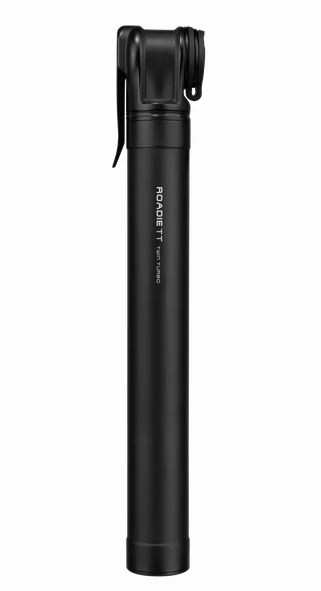 Die Roadie TT Twin Turbo ist eine Vollmetall-Minipumpe im Taschenformat – erhältlich in zwei Größen. Die Pumpe überträgt großes Luftvolumen von einem äußeren Zylinder in einen inneren Zylinder mit kleinerem Durchmesser, um mehr Luft bei zugleich höheren Drücken bewegen und Reifen 50 % schneller und einfacher aufpumpen zu können. Die integrierte Schutzkappe hält den Pumpenkopf bei Nichtgebrauch sauber und einsatzbereit, während der Klemmhebel beim Pumpen für eine luftdichte Verbindung zum Ventil sorgt.
